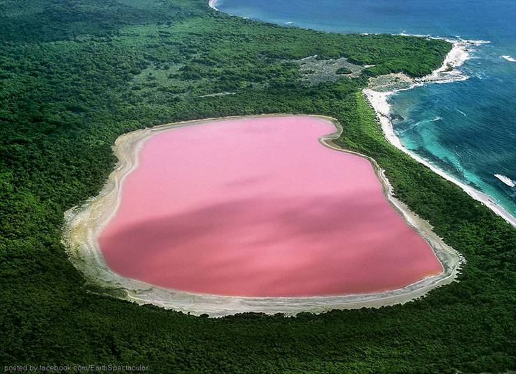 The pink and lovely..."Hiller Lake" (Western Australia) Its startling color remains a mystery, and while scientists have proven it's not due to the presence of algae, unlike the other salt lakes down Under, they still can't explain why it's pink.