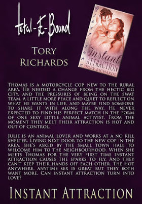 Thomas is a motorcycle cop, new to the rural area. He needed a change from the hectic big city, and the pressures of being on the SWAT team. A little more peace and quiet to reflect on what he wants in life, and maybe find someone to share it with along the way. He never expected to find his perfect match in the form of one sexy, little animal activist. From the moment they meet their attraction is hot and out of control.Julie is an animal lover and works at a no kill shelter. Living next door to the new cop in the area, she's asked by someone at the small town hall to welcome him to the neighborhood. When she meets Thomas for the very first time instant attraction causes the sparks to fly. And they can't keep their hands off each other. The hot anywhere, anytime sex is great but she wants more. Can instant attraction turn into love?