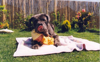 TheK9 is Brutus, a military K9 at McChord.. . He's huge - part Boxer and part British Bull Mastiff and tops the scales at 200 lbs. His handler took the picture. Brutus is running toward me because he knows I have some Milk Bone treats, so he's slobbering away! I had to duck around a tree just before he got to me in case he couldn't stop, but he did. Brutus was the recipient of the Congressional Medal of Honor last year from his tour in Iraq . His handler and four other soldiers were taken hostage by insurgents. Brutus and his handler communicate by sign language and he gave Brutus the signal that meant 'go away but come back and find me'.