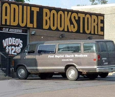 Years ago hubby and I pulled into an adult bookstore. We lived in a small town and the store was located on main street. Trying to be discreet, yeah, try that in a big red Cadillac. Anyway, he was just going to run in for something and I sat, cringing in the car and hoping no one gave us another look. As hubby came out of the store the unthinkable happened, and the car alarm went off. Oh my god! It might as well been an air raid. His eyes got big and he ran to the car. I'm screaming, I didn't touch anything! LOL