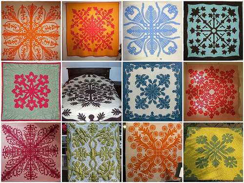 Long before Western explorers and missionaries arrived in the Polynesian islands, many traditional crafts existed in Hawaii that set the stage for the development of its unique and wonderful style of quilting. The striking method of cutting a design from a single piece of fabric and appliqueing it to a contrasting background emerged in the islands sometime in the mid-nineteenth century. A Hawaiian quilt is a distinctive quilting style of the Hawaiian Islands that uses large, symmetric applique patterns. Motifs often work stylized botanical designs in bold colors on a white background. Hawaiian quilt applique is made from a single cut on folded fabric. Quilting stitches normally follow the contours of the applique design. The climate of Hawaii is unsuitable for cotton cultivation, so all Hawaiian quilts are constructed from imported material. Hawaiian women learned how to quilt from the New England missionaries in the early nineteenth century.