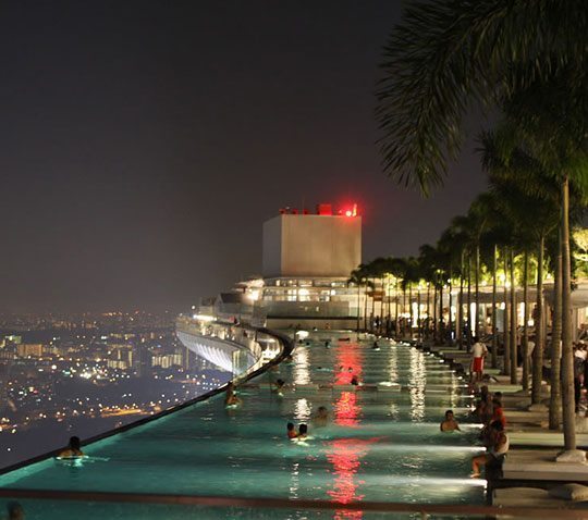 Pool on the 57th floor of the Marina Bay Sands Resort in ...