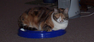Well not really. I bought my babies a new toy which came with catnip. They each took their turn playing and rolling all over it. This is what Gin Gin looked like when she was done. She collapsed in a drug induced sleep with her eyes open. They looked glazed over! It was so funny. Then when she wakes she decides to claim the toy for herself. As you can see she practically covers up the whole thing.