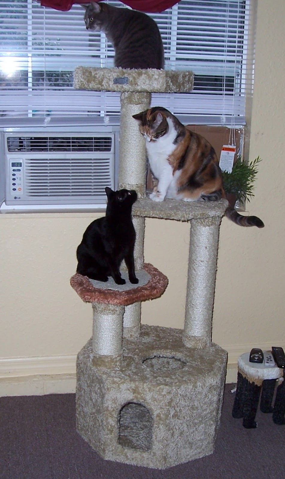 While I'm talking about animals, here's the Christmas gift I treated my 3 furry felines to. And they love it! Gin Gin has actually claimed the house as her own, even though she's on one of the shelf's. Jezzie and Woofy have claimed the top. Of course Alivia had to get into the picture.