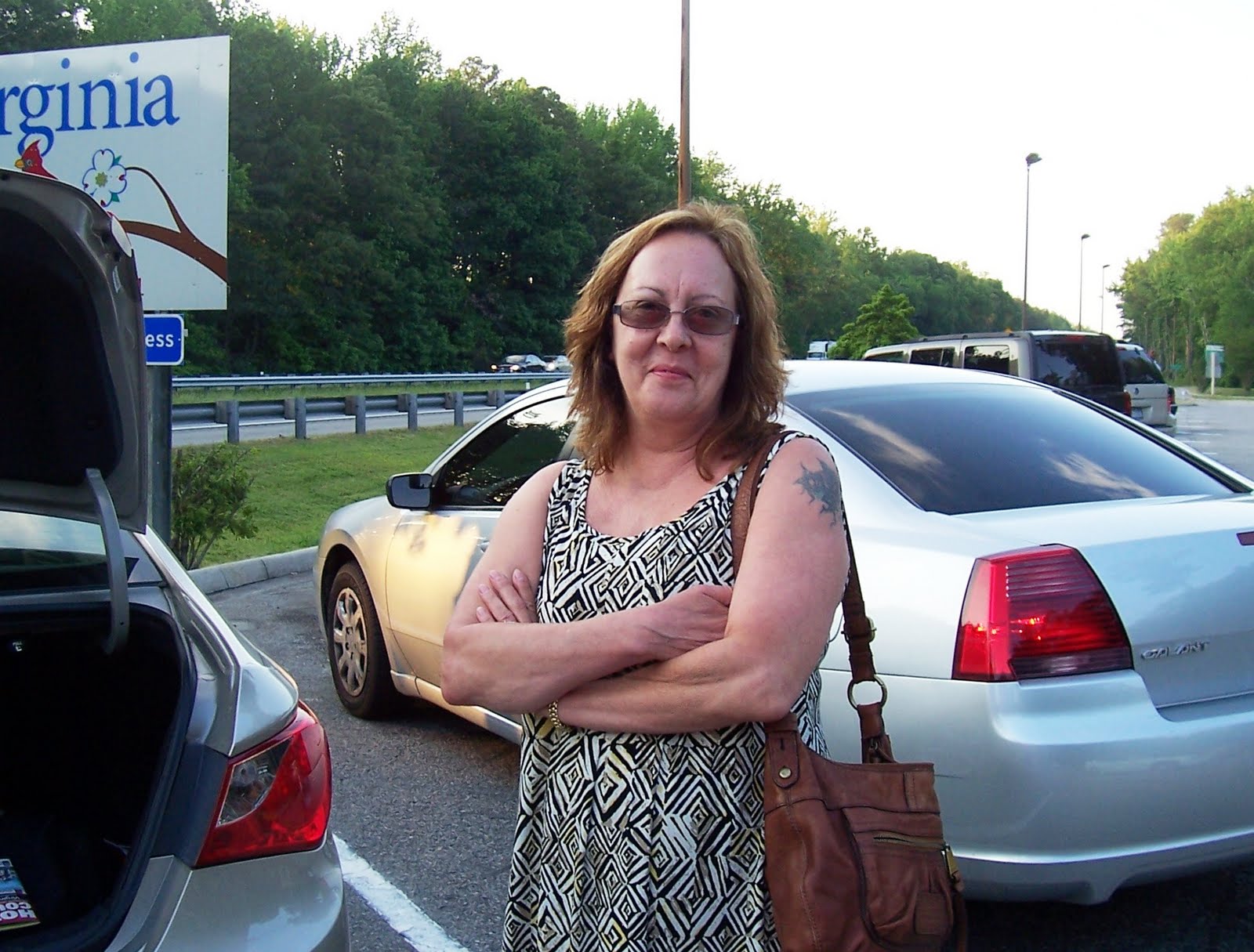 I'm sharing this morning. Beginning with my friend Laura, who drove to Maine and back with me. We've known each other for years and had a great time. I kept her amused and she protected me from any biker dudes that I thought might be out to cause trouble:) We just entered Virginia.
