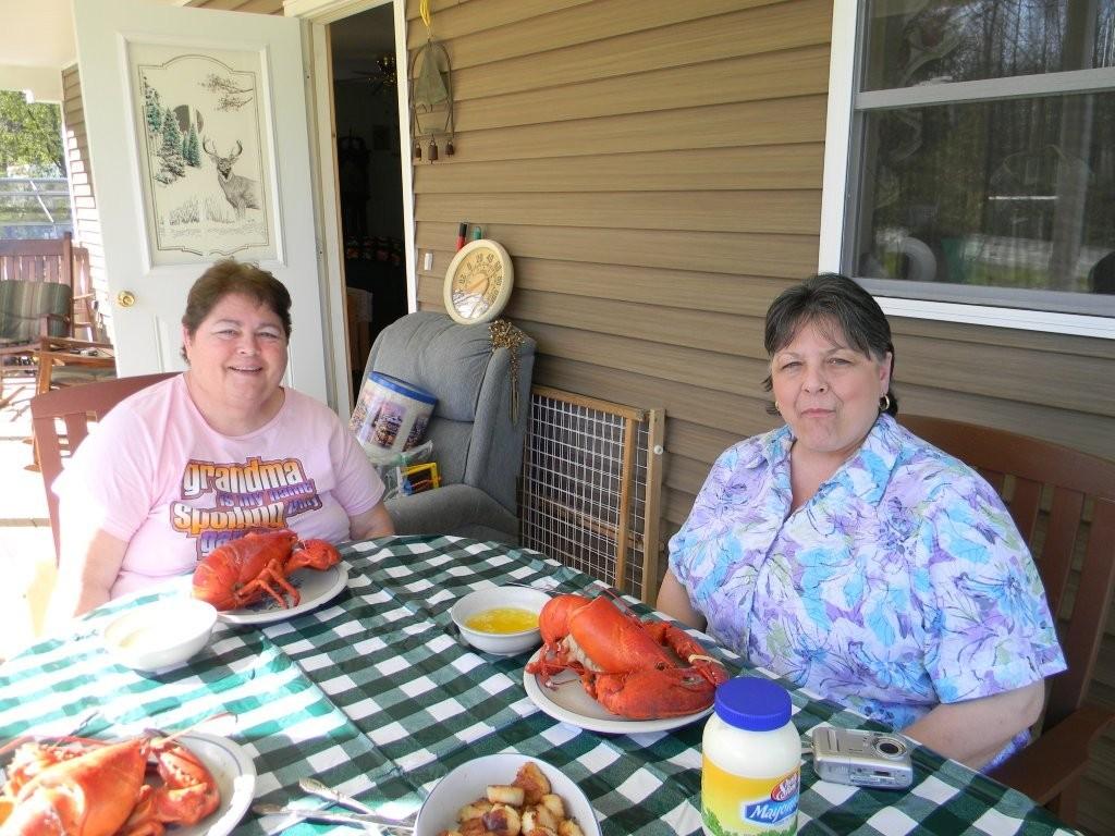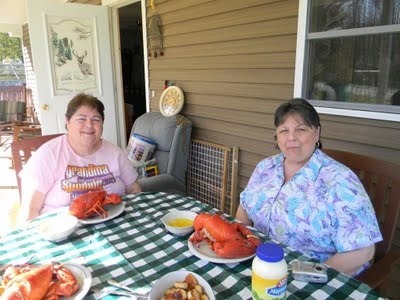 Of course I can't go home and not have lobster! In fact Maine is the only place I'll eat it. Mary and her hubby Roger treated me to one. They were huge! I bought some sea scallops and by the looks of it, I'd just crammed one into my mouth.