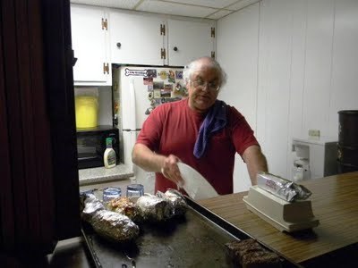 Here's a picture of a real smart ass. My brother-in-law Ray. I told his son the day before that I'd be up to see his mother and father at 6:00 the next day and that I expected steak, baked potato and Cesar salad for dinner. I told Jason I was just kidding and Ray probably knew that I was but here he is, fixing us a steak, baked potato and Cesar salad!