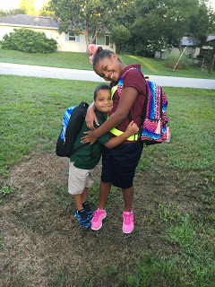 I love these two kids to pieces! My grand kids and their first day of school. The little guy is in kindergarten and big sister is in 5th grade. This is the only year they will attend the same school together.