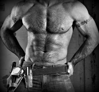 Buffed, but not too buffed. Just enough hair, shaved chests are nice but let's get real, it's not normal. Nicely defined arm muscles. Plus the tool belt indicates he has a man's job, meaning that he isn't a shoe salesmen. I like the tattoo, too. He doesn't even have to be handsome because his body is what does it for me.If I was in the market.Which I'm not.