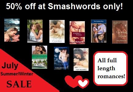 Going on here until the end of the month. Don't miss out. A lot of authors are participating and you can pick up your summer reads for 25%, 50%, and 75% off regular prices! Make sure you add the coupon code, which is located beneath the buy button on the individual book page, at checkout.