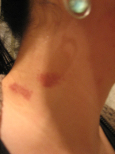 I've always thought of a hickey as a love bite. It's also called a bug bite, kiss mark or a bruise. Bruise? Guess that depends on how you got it. You can acquire a bruise a number of ways but a hickey is usually caused by suckling on the skin, which causes small blood vessels to burst under the skin. I think you typically see hickeys on the neck and chest area. Ever had one?