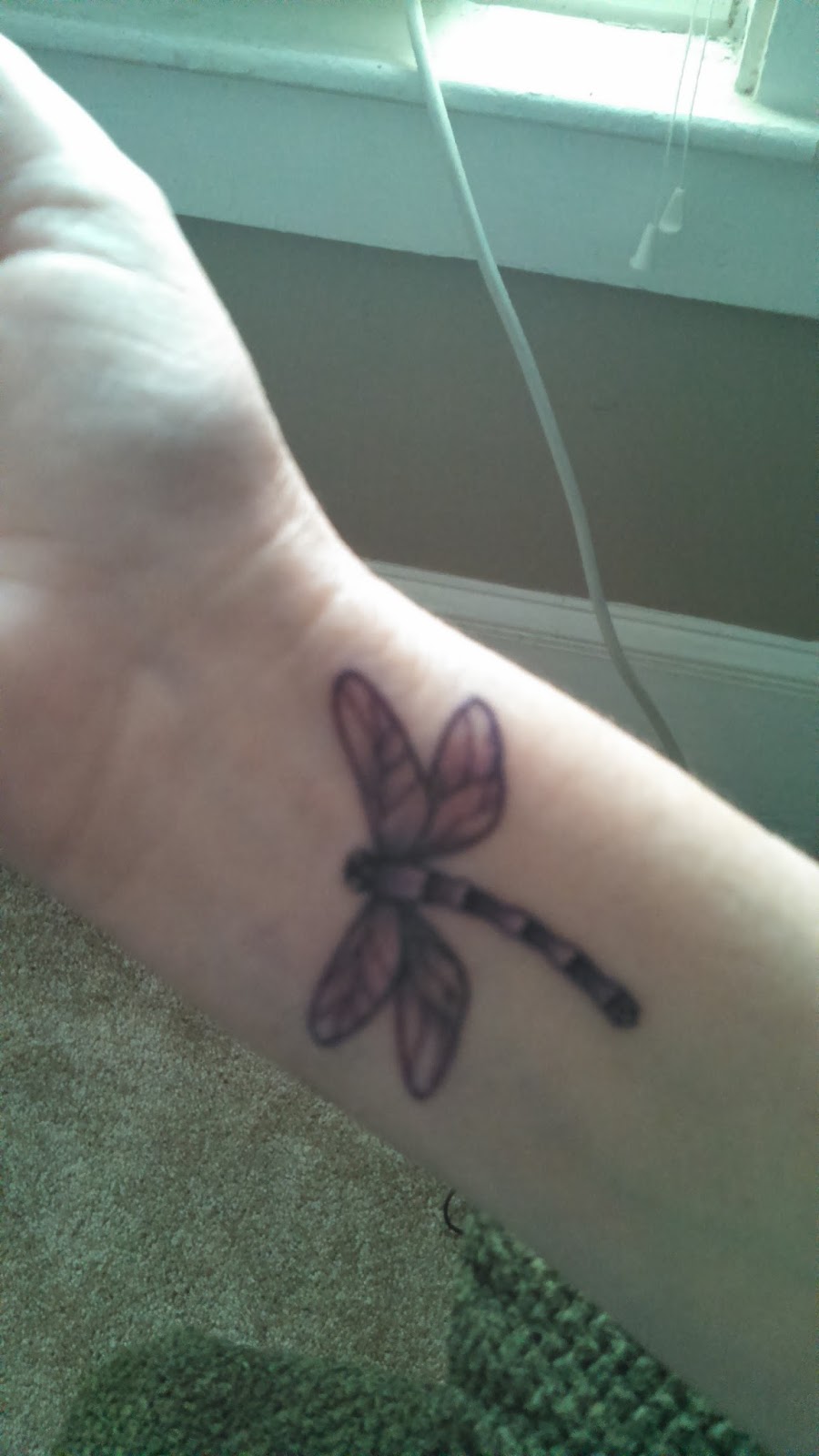I got my first tattoo when I went home (Maine) last month. One of my best friends and I decided to get matching dragonflies on our wrists. Came out a little bigger than we intended but it's beautiful! Next year we're going to get matching ladybugs. Much smaller right above the dragonfly.I have to admit, getting a tattoo hurts like hell. Yet I'm so glad I did it.