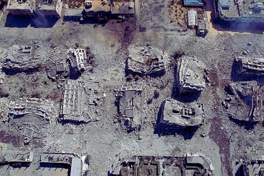 As for Israel itself, it makes its own moves within the imperial realist chess match. A thorough piece at Jonathan M. Katz’s site The Racket illustrates this through the concept of “the iron wall,” which has been central to Israel’s security strategy from the state’s inception. Hamas’ own origins in the late 80s include tacit and active support from Israel as a way of weakening secular forces like the Palestinian Liberation Organization. And we cannot forget Netanyahu’s ongoing attempts to consolidate judicial and legislative power within Israel, which are of course perversely framed by him and his supporters as a matter of national security. Now, he vows to “flatten Gaza,” and looks hellbent on keeping his promise. Stunted democracy is further curtailed to save it, terror promises to keep terrified people safe. There is no attempt to reconcile with a full past because we cannot reckon with what won’t be remembered.