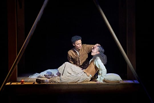 As for the play itself, it underwhelmed from its first moments. Some of that was down to Lolita Chakrabarti’s adaptation. While much of the dialog is taken directly from O’Farrell’s book, its structure, its non-linear moves between the events of Will and Agnes’ marriage, the birth of their children, and Hamnet’s death, are flattened into a linear chain of events. This is an unambitious, paint-by-numbers adaptation, barely attempting to reach in the direction it needs to.