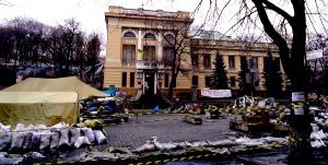 Barricades protect Ukraine’s National Parliamentary Library. (Source: IFLA)