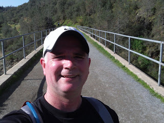 Before I knew it, it was time to turn around. I was one hour and forty five minutes into the run when I arrived at an open plateau where the trail branched off in two different directions. That's where I decided to turn back. The descent back toward No Hands Bridge was fast. I felt the the midday heat near eighty degrees. I tried to imagine what the WS100 racers would feel like when they reached this point in the endurance run with one more ascent to endure, up out of the canyon, to Robie Drive. It must be a great sense of relief. I felt a taste of it as I came down Finley Street after following the small spray painted WS100 foot steps that marked the trail as it wound through the city streets to the finish. I was fifteen minutes later than I had planned getting back to the Stadium Gate. My 12 mile/three hour taste of the Western States Endurance Trail had left my legs burning. My wife treated me to a bacon cheese burger at Local Heroes in Auburn so I could get a good boost of carbs. I had booked another night at our motel knowing that I would need it to rest and recover. My foresight was true.