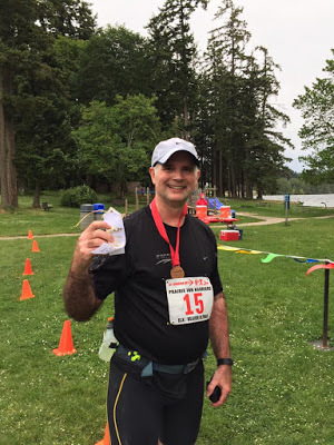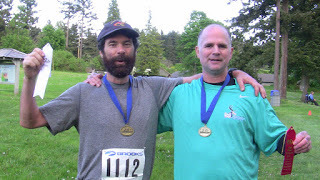 The sky was overcast at 6 a.m. as we gathered behind the starting line at Hamsterley Park on the edge of Elk Lake in Victoria. I had set up my aid station with the help of two friends, Michael Burton, and Randy Hughes. They had committed to man it for the duration of the eight loop, 80km (50 mile), ultra. As usual, with most early morning ultras, I wasn't able to get much sleep the night before. I was up at 4 a.m. to get a boost of carbs, eating a couple of re-heated protein powder pancakes, a cup of coffee, and several cups of water. After running three or four kilometers I shook off my tiredness, and started to feel the Victoria vibe, taking in the pleasant scents of Spring on the forest trail.