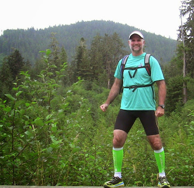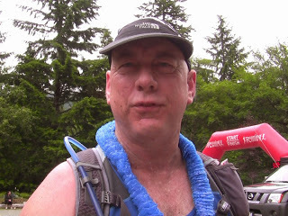 The Whistler 50 Mile Ultra course follows a 20km loop, run four times, consisting of paved and gravel trails, beginning and ending in Whistler Village at Olympic Park. The first loop was mostly done in the dark. I had my head lamp on so I didn't see much scenery. It went fast, as I came through Olympic Park in just over 2 hours. I wore my camel pack for most of the first loop, and switched to a Nathan drink belt at the 16km aid station, where I had my drop bag. It would be 14km from there, before I made a return to my drop bag again, and this is when the problems began. I started to refill one of my Nathan bottles with ELETE, which I didn't know was highly concentrated. I drank quite a bit of it up until the 30km mark. My stomach didn't like this, and fought back. I pressed on in the hills, and switched out my drink bottles again at the 36km aid station. Getting some CYTOMAX, which I was used to back into my system settled my stomach somewhat, but my pace started to drag. I came through the end of the 40km loop around 4:25, feeling like I wanted to drop. The large crowds there, some ringing cow bells, cheered me on though, and I was encouraged by the idea that I was over half-way done. I tried to drink more water to flush out the ELETE as I came approached the 50km mark. I rewarded myself with a SNICKERS bar and some Coke at the aid station before heading across the narrow river bridge, up the steep hill to the gravel forest trail. As I continued, the sun broke through the clouds, and I took appreciative glances at the passing lake and mountain views. I thanked God for his amazing creation, and prayed that He would renew my strength. Relay runners, with much fresher legs, overtook me, speaking encouraging words. This did spur me on. An oatmeal raisin cookie grabbed at the 56km aid station helped to settle my stomach, as I made my way back to the start/finish.