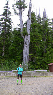 With overcast skies the temperature wasn't an issue for most of the morning. I kept a good pace, slowed only at sections with exposed roots and rocky outcrops. With a Camel Pack holding two liters of Gatorade strapped across my back I kept hydrated. I had some power gels and S-Caps in one of its pouches to help out as well. Near 10-Km in I found a good water source at Fisherman's Creek where I refilled my Camel Pack bladder on the way back. After running 2 1/4 hours I was about 2 km past the Danish memorial on Cape Scott. I turned around there because I knew my wife was waiting, and we still had to drive back to the Comox Valley that night. She worked the next morning. I was whacked pretty hard by running around 30 km on the Cape Scott trail that day. When I got back to the trailhead along with several other groups of backpackers I shared their sense of revelry with having come to the end of such a difficult slog.