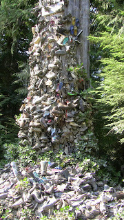 To get to the Cape Scott trail take highway 19 until just past Port Hardy. Turn left onto the paved road where the sign says Holberg - Cape Scott Trail. 14-kms down the road you'll come to the boot tree on the right side of the road, where some of the past hikers of the trail have placed their worn out hiking boots. Continue on this road west 50-km until reaching Holberg. Drive through Holberg past the restaurant/pub and baseball field until you see a sign for Cape Scott Provincial Park. Turn left there and follow the logging road as it branches off to the right. Watch out for pot holes and logging trucks while on these roads.