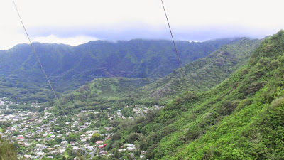 One Saturday I spent about two hours power hiking up to Waahila Ridge State Recreational Area. This was worth the slog as the views are great from up there. The trails along the ridge weren't runnable though as rain had made them slippery. The only way to access this park is through a winding series of residential streets. Follow Kapahulu Avenue from Waikikki under the H1 highway, turn right at Waialae Avenue. Take the first left at St. Louis Drive. Follow this steep residential street all the way up to Betram Street, and stay on it until you get to Peter St. Turn left, go two blocks, and then turn left again at Ruth Place. There you will find the entrance to the Waahila Ridge State Recreation Area. If you can run up this hill it would make for some great hill training. I could only manage to power hike. But I did run most of the way down, and that did a good number on the quad muscles. I recommend having the Loco Moco breakfast at the Rainbow Drive-In on Kapahulu Avenue after completing this, as you will certainly build up a good appetite. (Loco Moko is a hearty breakfast that includes white rice, a hamburger patty, and eggs, smothered in gravy.) The Rainbow Drive-In also makes a tasty icecream slushy drink.