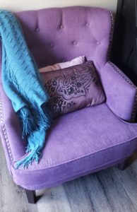 Kathi – You guys, the book is Cozy White Cottage: 100 Ways to Love the Feeling of Being Home. Liz, we are giving away two copies of this book on the podcast, and two copies on Facebook. Here is the question I want our listeners to answer. Here’s the thing, I’m going to give you two ways to enter. If you put a picture of this: What is the thing in your home that most defines you; that you love; that you use; that you would buy again, because it’s totally you? I’m going to put up a picture of my purple chair with the turquoise pillow, because that is about as Kathi as a piece of furniture could get. I’m going to ask you this, Liz. What is the thing in your home that makes you feel like the most you? If you wouldn’t mind, I’d love for you to send us a picture of it.