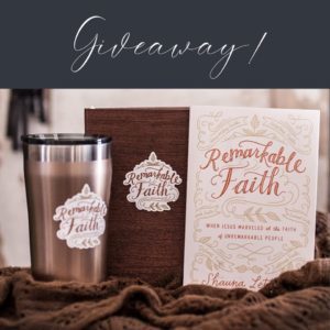 We are so excited to announce that Shauna has offered to give away a prize bundle of her book, Remarkable Faith: When Jesus Marveled at Faith in Unremarkable People. To enter, leave a comment below on how you have tried to be the hero of your faith or how you’ve learned to rely on God to be the hero. One grand prize winner will be chosen and two others will receive a copy of her book. Don’t want to wait? Get your book wherever books are sold. For Amazon lovers, purchase your copy here.