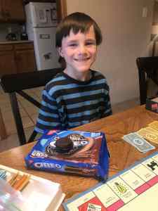 Both boys thoroughly enjoyed seeing Mom suffer as she had to go to jail and couldn’t be set free until she rolled doubles. Lots of laughter and lots of talking. We just made it a fun evening all around by having dessert before dinner, and dinner was pizza from one of their favorite restaurants. The more I got excited about the evening, the more they got excited.
