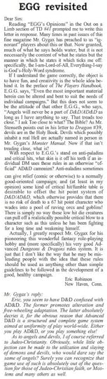 The "Sage Advice" column of Dragon was often of interest to me in my youth, largely because I wanted to know the "right" way to interpret the rules of D&D and (especially) AD&D. While Jean Wells acted as the magazine's Sage, there was a certain semantic bluntness to many of her replies. Take, for example, this one from issue #39 (July 1980):