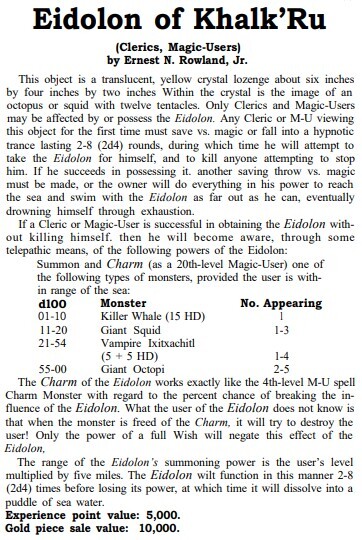 Gary Gygax was a great admirer of the works of A. Merritt, highlighting several of his works for particular mention in his Appendix N. One of these is The Dwellers in the Mirage. The story was first published as a serial in Argosy in early 1932 before being its installments were collected together into a novel later that same year. Among other things, Dwellers is notable for including an homage to Lovecraft in the form of Khalk'ru the Kraken, an ancient octopoid entity similar to Cthulhu.