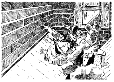 Despite these criticisms, I nevertheless retain an affection for Rapidstrike! My friends and I enjoyed ourselves while using it, which is the ultimate seal of approval when it comes to entertainment of this sort. Nowadays, I think the module's main value might be in some of its artwork, created by the likes of such legends as Jeff Dee, David LaForce, Bill Willingham, Jim Roslof, and Erol Otus. Otus, in particular, offers up some truly memorable illustrations, such as this one depicting the effects of the drug Zucor on any agent foolish enough to ingest it. Good times!