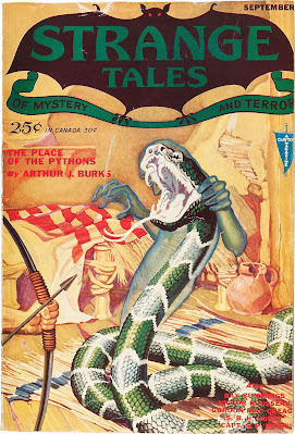 One of his most well known (and anthologized) horror stories is "The Return of the Sorcerer," which first appeared in the September 1931 issue of Strange Tales of Mystery and Horror. The tale is influenced by the work of H.P. Lovecraft, with the blasphemous Necronomicon playing a central role in its narrative. Smith shared a typescript of the story with HPL in early 1931, who had kind things to say about it, though he did make several suggestions for heightening its tension. Smith embraced these suggestions with enthusiasm and the result is a creditable, occasionally frightful yarn in the best tradition of the pulps.