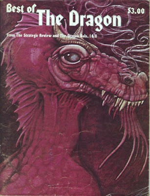 Subsequent volumes of Best of Dragon never impressed me as much, because they covered time periods when I was a regular reader. I already had access to their contents, so why would I need them in anthologized form? Those first two volumes, though, were one of my earliest windows into the much more wild and woolly world of the hobby, one I'd missed by a couple of years and whose echoes, still occasionally heard even in the early 1980s, didn't always make sense to me. Best of Dragon filled in a few of the details, but what it really did was point me in the direction of seeking out more information about what had come before I started playing. I'm still very grateful for that.