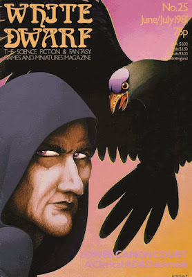 Issue #25 of White Dwarf (June/July 1981) features a cover by Fiend Folio cover artist, Emmanuel. In addition, Emmanuel provides all of the issue's interior art, except for graphical elements and headers that first appeared in previous issues. Having a single artist handle all the artwork of a single periodical issue is quite unusual in my experience, which is why it's all the more striking in this instance. Mind you, compared to, say, Dragon of the same era, White Dwarf had a lot less artwork per issue. Still, I couldn't help but take note of it. Also worthy of note is that this issue marks the fifth anniversary of White Dwarf's publication.