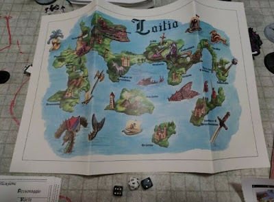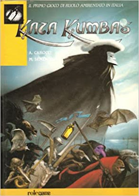 Designed by Agostino Carrocci and Massimo Senzacqua, Kata Kumbas was the second Italian language roleplaying game ever published. It first appeared in 1984 just a few months after I Signori del Caos. Unlike its predecessor, Kata Kumbas featured an original rules system – I Signori del Caos was derivative of AD&D – and, more importantly, a setting based on a fantastical version of Italy (or Laitia). Laitia has many inspirations, from Orlando Furioso to Italo Calvino's Italian Folktales to sword-and-sandal movies. As a result, Kata Kumbas has a comedic and picaresque tone, especially when compared to most English-language games available at the time.