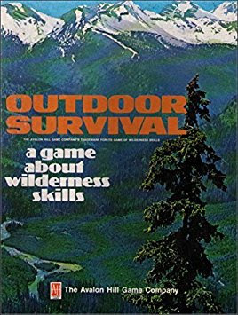 None of this says anything about Outdoor Survival itself, though. As I said in my opening paragraph above, it's designed by James F. Dunnigan, a legend in the wargames world. His first design, Jutland, was published by Avalon Hill in 1967, followed by many others, including PanzerBlitz in 1970 (also from AH). Dunnigan was also the founder of SPI and, believe it or not, the designer of the Dallas RPG. It's worth noting here that the game indicates that it was "produced and jointly distributed by the Avalon Hill Game Company … and Stackpole Books." Unlike Avalon Hill, Stackpole Books still exists and is a publisher of nonfiction books about arts and crafts, travel, and the outdoors. (As I understand it, Dunnigan claims, in his The Complete Wargames Handbook, to have designed Outdoor Survival as part of a bet about his ability to design a game on any subject.)