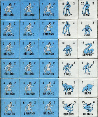 The more I look into TSR's 1980 boardgame, Knights of Camelot, the more entranced I've become by it. Take a look at some of its counters, with art that looks to me like the work of Dave Sutherland: