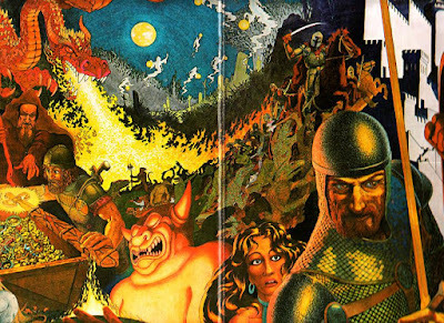 But 2e's art and presentation are real problems, at least if you're someone whose conception of fantasy is more steeped in a pulpy, pre-Shannara mold. If one's tastes tend more toward fantastic realism, I would wager that 2e's illustrations were probably very much to your liking. If not, they're distracting at best and repellant at worst. That's too bad, I think, because, as I've noted, I don't think the rules of second edition AD&D are themselves a serious step down from those of first. At the same time, I can hardly fault anyone for disliking the look of the 2e books enough not to give their content a fair shake. I think esthetics are important, vital even, and that's especially true when dealing with imaginary places and creatures. Art helps draw one into fantasy, which is why it's key that it be appealing to its intended audience.