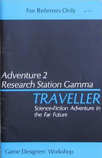This is the immediate predecessor to Twilight's Peak in terms of publication and deals with many of the same general concepts and themes, most specifically the mysterious, extinct alien species known only as the Ancients. Unlike Adventure 3, Research Station Gamma is more straightforward and therefore easier to use. On the downside, some of that straightforwardness comes in the form of being what is effectively a "dungeon crawl in space" – a common flaw in some of GDW's early Traveller adventures. The fact that much of the opposition in the scenario takes the form of alien animals held inside the titular research station only further contributes to this feeling. On the other hand, the "dungeon" in question is an interesting one, with an unusual architecture that many old Traveller hands look on with some fondness. The adventure is also notable for being one of the few GDW publications to mention, let alone describe, robots, an element of science fiction Traveller largely glossed over.