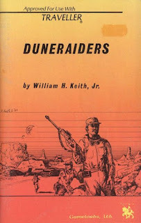 Published by Gamelords and written by William H. Keith, Duneraiders is a companion piece to the supplement, The Desert Environment (what a surprise!). The scenario itself deals with corporate warfare on the world of Tashrakaar, a mineral-rich planet located outside the borders of the Third Imperium. Tashrakaar has a native population, the so-called Duneraiders, who don't take kindly to the presence of offworlders and with whom the player characters must eventually ally – first simply to survive and later to thwart the machinations of the nefarious Dakaar Minerals corporation. If this all sounds more than a little inspired by Frank Herbert's famous novel series, you're not wrong. Fortunately, William H. Keith is a good adventure designer and he introduces enough new elements into the mix to ensure Tashrakaar isn't just a clone of Arrakis. I must confess to a lot of personal fondness for this adventure, because it's one of the few I first experienced as a player rather than as a referee. I had a lot of fun with it and that plays a role in its inclusion here.
