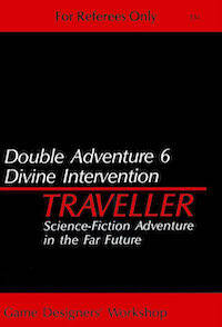 1982's Divine Intervention is one part of a double adventure (the other part entitled Night of Conquest) and is, in my opinion, the more interesting of the two. Interestingly, the scenario is written by Lawrence Schick, formerly of TSR, and marks, so far as I know, his sole appearance as a writer for Traveller (though he was one of the co-designers of the SF RPG Star Frontiers). Divine Intervention focuses on the efforts of the player characters, as agents of an offworld corporation to stage a "message from God" to the leader of a religious dictatorship on the planet Pavabid, said message supporting the corporation's desire to exploit Pavabid's mineral resources. Divine Intervention is an imaginative caper scenario, one that makes good use of the varying tech levels of Traveller worlds. It's also a rare scenario that talks much about religion in the Third Imperium setting, albeit in a very limited fashion. I have fond memories of refereeing this one.