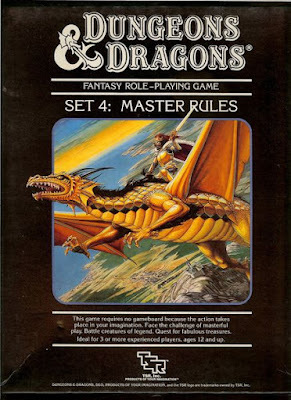All in all, the Master Rules are a mess. They seem to exist solely to fill in a gap in the progression toward the Immortal Rules rather than being based on a clear thematic need. The Basic Rules, for example, focus on dungeon adventures, while the Expert Rules expand organically from that toward wilderness exploration. From there, we get domain rulership in the Companion Rules, which is a logical progression. But the Master Rules? What do they offer in this progression? Is preparation for godhood the next logical step? Even if it is, the bigger problem is that rules, as presented here, break down, with new real way to challenge characters whose "to hit" rolls and saving throws are so low and whose hit point totals so high. Mind you, I'm not sure anyone ever played campaigns at such high levels, so the whole matter may be academic in the end.