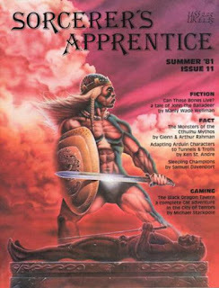 Now, I'm a huge fan of Wellman's fiction in general and the stories of John in particular, but what was the deciding factor in my decision was the publication where it first appeared: Sorcerer's Apprentice (issue #11/summer 1981, to be precise). For those unfamiliar with this periodical, Sorcerer's Apprentice was published by Flying Buffalo in support of its fantasy roleplaying game, Tunnels & Trolls. Original fiction by established fantasy and science fiction authors was a common feature of many gaming magazines in the 1970s and '80s and Sorcerer's Apprentice was no different.