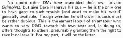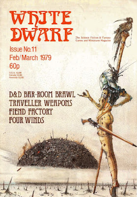 Livingstone also comments on a couple of other interesting topics. First, he notes that, thanks to the increase in its readership, White Dwarf is expanding to 32 pages from 28. By my lights, though, it doesn't seem as if those extra four pages are being used for content but rather for more advertising. Second, and relatedly, he notes that "the hobby industry" is not "mass market" and its prices will be accordingly higher. Livingstone then takes aim at "photocopier fanatics" who make copies of rules or magazines rather than buying them. He encourages his readers to give such miscreants "a bad time" and to support game companies by buying their properly printed products.