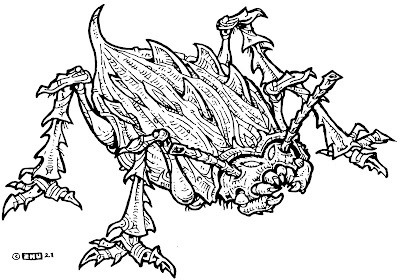 AC3[12], HD2*(9hp), Att1 × bite (1d4 + blood sucking), THAC0 18[+1], MV 120’ (40’), SV D12V13P14B15S16(1), ML 8, XP25, NA1d8(2d6), TT Carapace