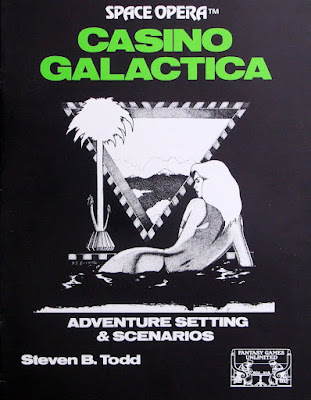 Today, I think the Space Atlas series tends to get a great deal more attention and perhaps understandably so, since it's in these volumes that we get a sense of the wider "kitchen sink" setting of Space Opera. Yet, FGU also published a fair selection of adventures for use with the game and some of these are well worth examining, starting with Casino Galactica, published in 1984.