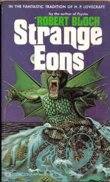 I bring all this up as a prelude to discussing Robert Bloch's novel, Strange Eons. Originally published as a hardcover in 1978 and then, in 1979, as a paperback (the cover of the latter appearing here), the book opens with the following: