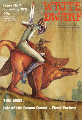 Issue #7 of White Dwarf (June/July 1978) represents something of a milestone for the British gaming periodical. Firstly, it marks the start of the second year of its publication. Secondly, it's the first issue to feature a full-color cover (by the ever-amazing John Blanche). In his opening editorial, Ian Livingstone draws the reader's attention to both of these facts – facts he believes serve as "a reminder to traditional wargamers that we (i.e. roleplayers) are a serious part of the hobby and not just a weird, temporary deviation from it." As ever, I find such comments very strange, but then I was never a wargamer (take a drink), nor did I much care about their opinion of what seemed to me to be a related but wholly separate hobby. Mind you, I was a 10 year-old child when I discovered D&D rather than an adult like Livingstone, so I suppose I can be forgiven for not understanding his seemingly interminable concern about the reputation of roleplaying in wargaming circles. If nothing else, it's a reminder that the past truly is another country.