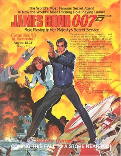 Though I played a fair bit of Top Secret in my youth, I think my favorite espionage RPG was James Bond 007 from Victory Games. Even ignoring its connection to Ian Fleming's novels and the United Artists film series, James Bond 007 was in my opinion a great bit of game design, with elegant, emulative rules and terrific graphic design. I had a ton of fun with it during the brief time when it was in production (1983–1987).