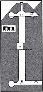 Shadows is one of my favorite Traveller adventures, one I've refereed numerous times over the decades. One of my favorite things about the adventure are its maps and diagrams. All of them serve to describe the alien ruins found on the backwater planet of Yorbund that forms the location in which Shadows takes place. While several of them could easily have been chosen as an entry in this post, I think Diagram 1, pictured to the left, is by far the best and most interesting. As you can see, the diagram depicts the central shaft of the ruins, descending from a hidden entrance at the top of a surface pyramid tens of meters below the surface of Yorbund. It's a very practical image, enabling the referee to get a handle on how the various parts of the ruins relate to each other. It's also very atmospheric, establishing Shadows as a literal descent into the underworld.